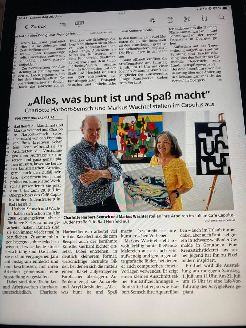 Willkommen auf unserer Presse-Seite, auf der wir veröffentlichte Zeitungsartikel präsentieren. Hier finden Sie Berichte über Ausstellungen und Künstlerportraits, die von der Presse veröffentlicht wurden.