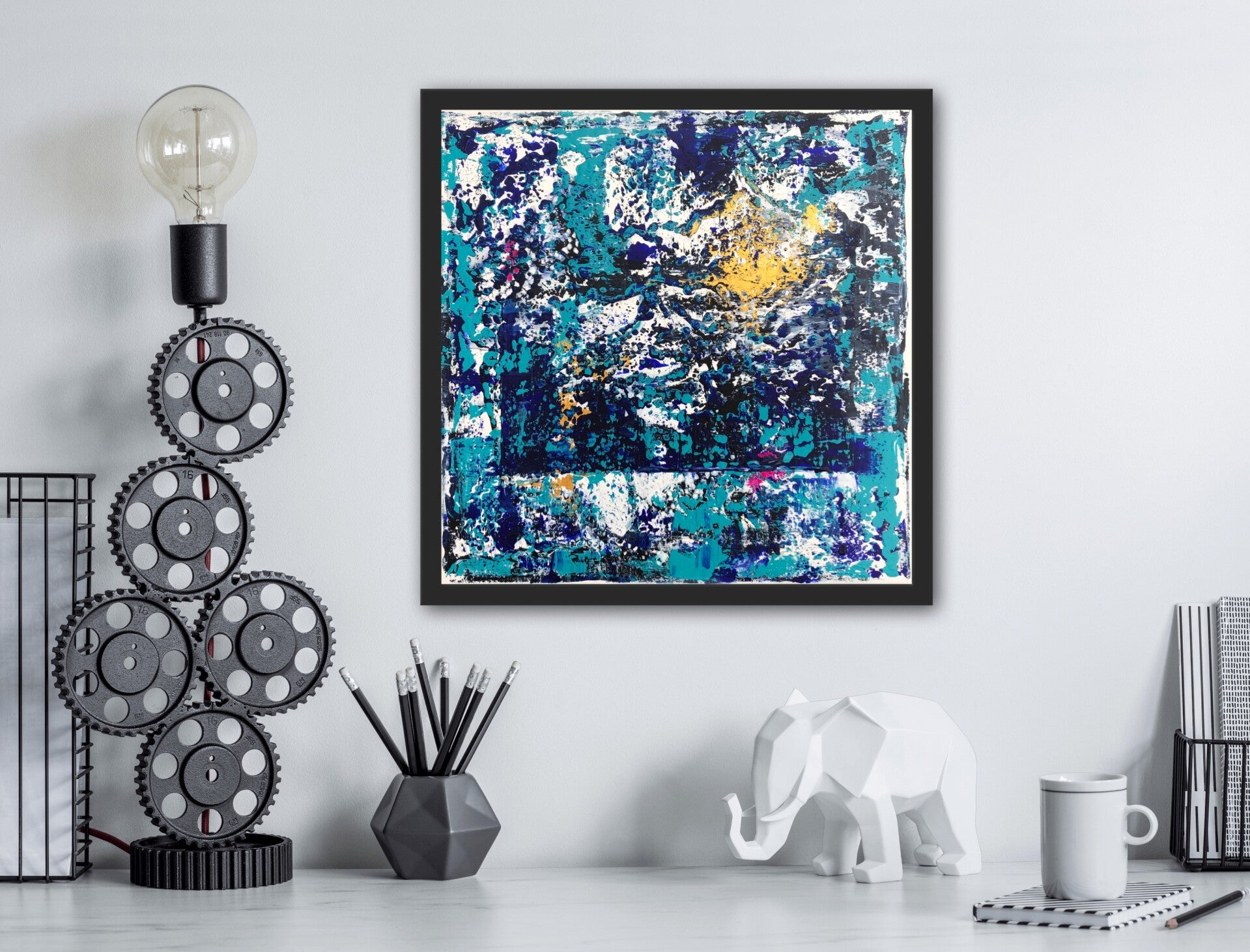 Das Bild braucht einen Rahmen, da die Seiten nicht bemalt sind. Es wird rahmenlos aber mit einer Aufhängung versehen geliefert.