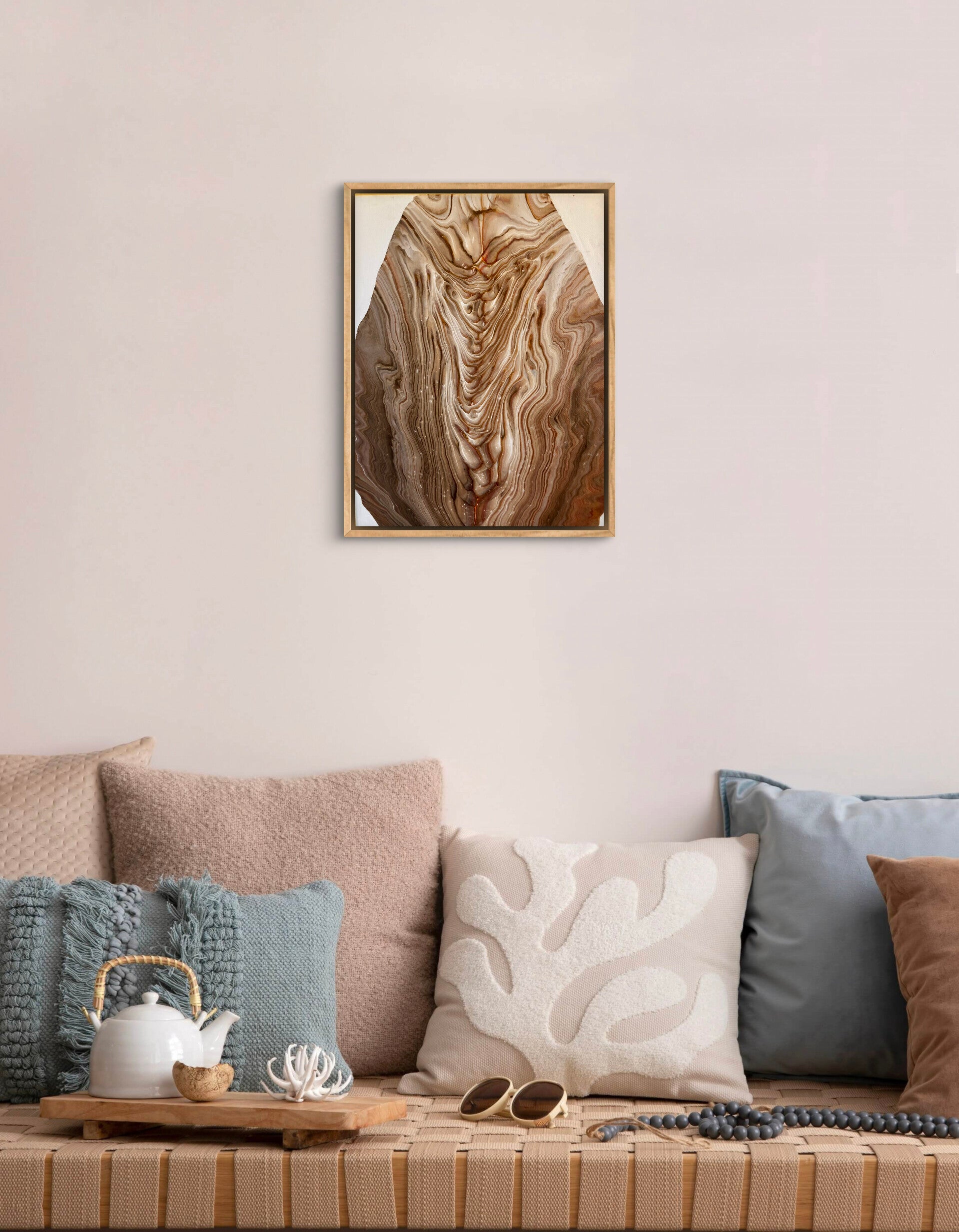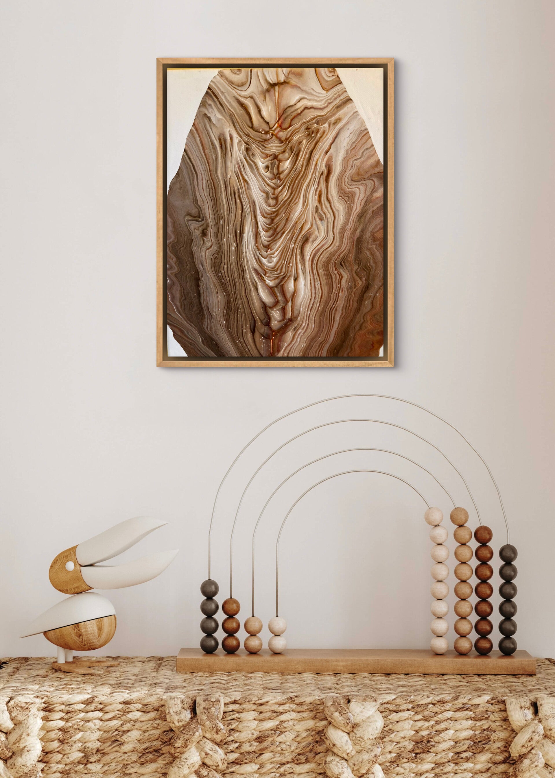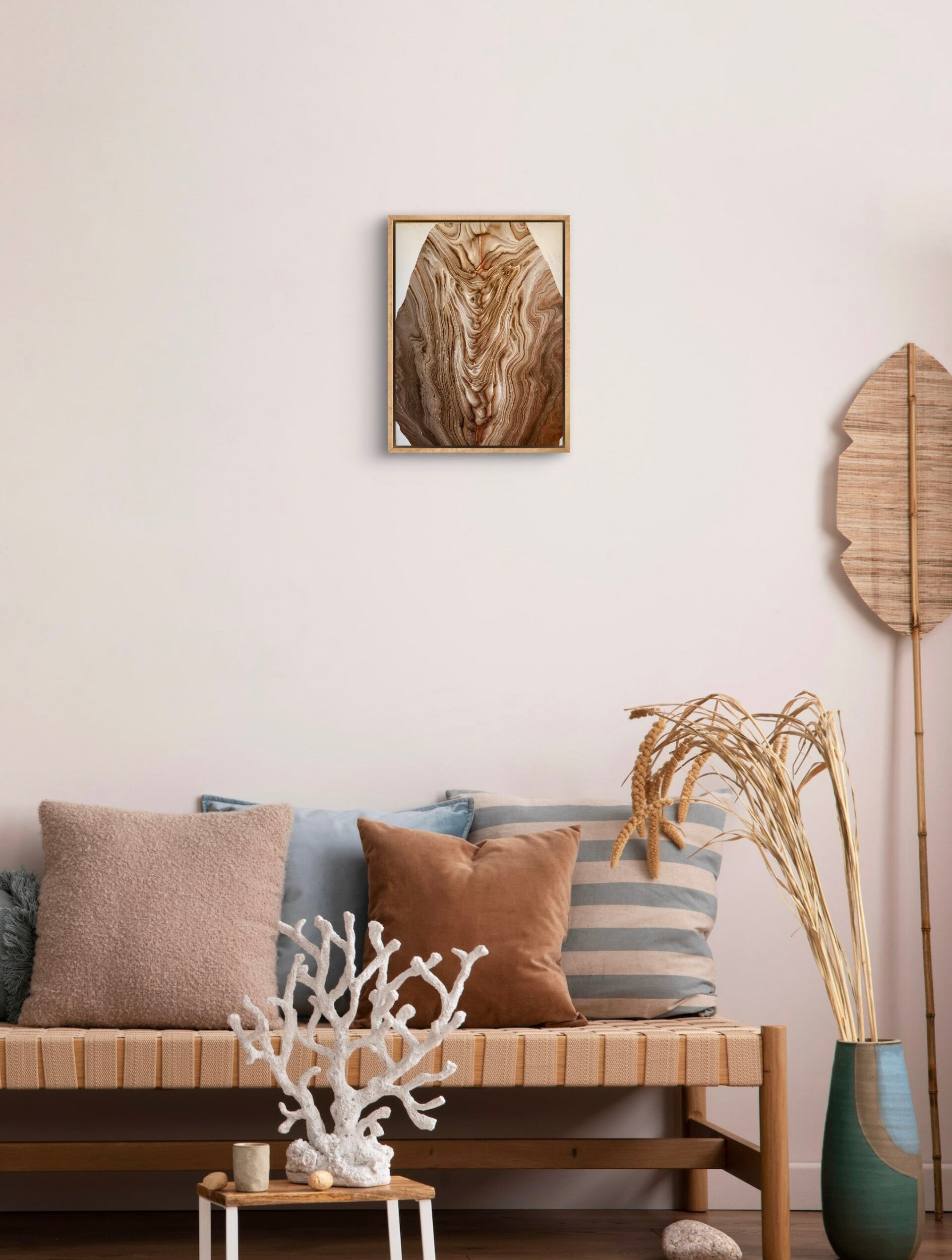 Hauptfarben: Beige, Braun, Weiß.