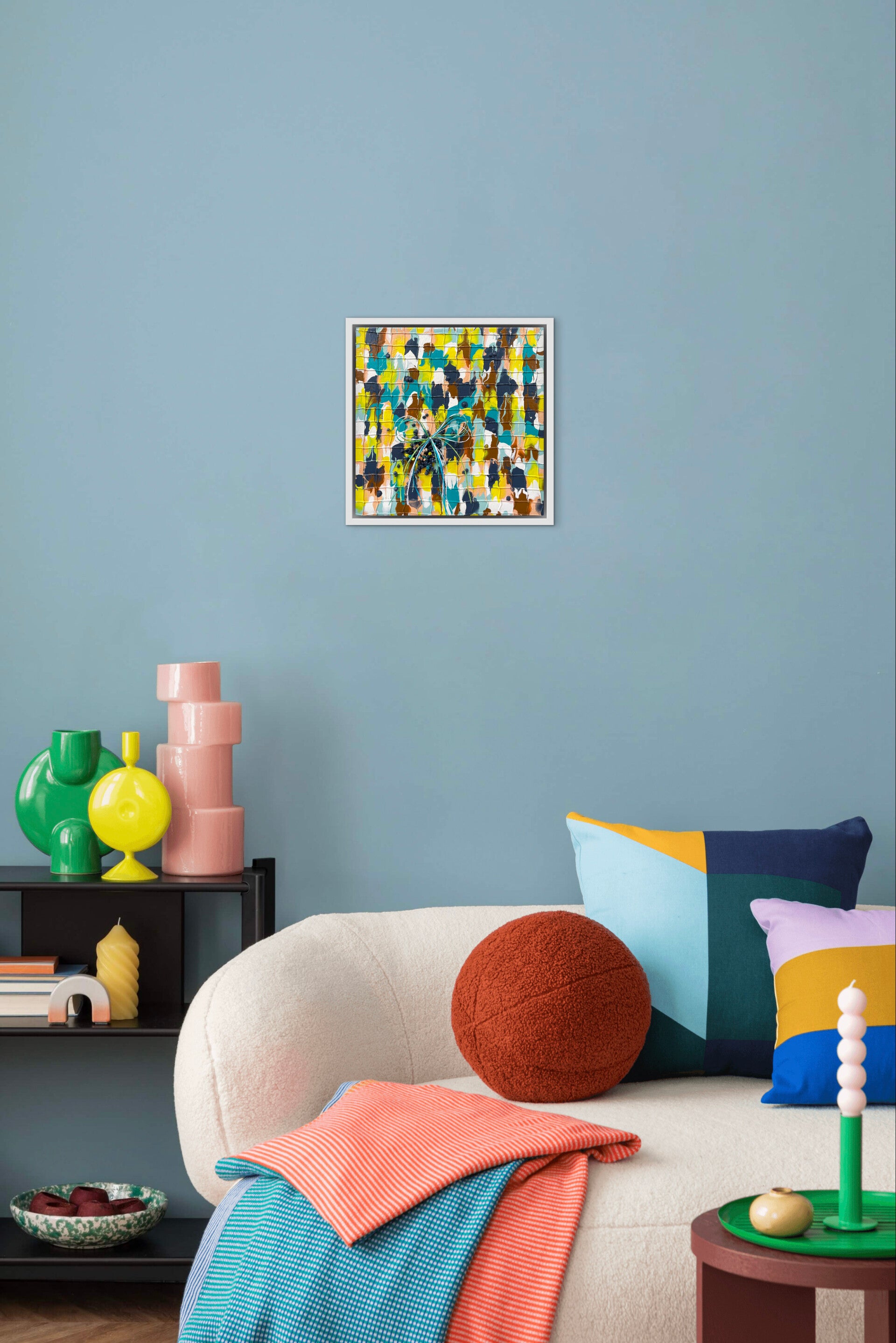 Da die Seiten bemalt sind, kann das Bild auch ohne Rahmen aufgehängt werden. Es wird rahmenlos aber aufhängefertig geliefert. Die Rahmen auf den Abbildungen sind nur beispielhaft. Die Handsignatur befindet sich auf der Rückseite.