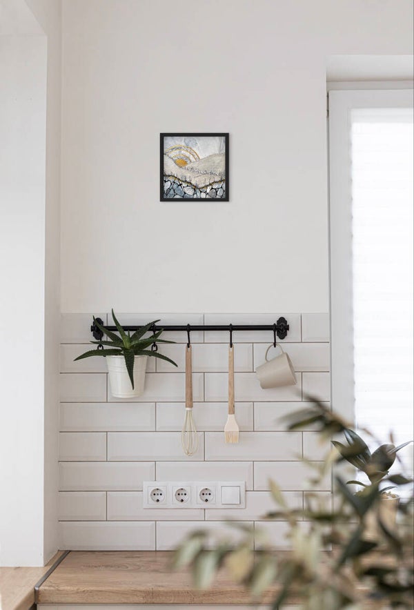 Auf gegossenem Untergrund wird eine abstrakte Schneelandschaft dargestellt. Es sind sowohl grafische Elemente, die mit Acrylstiften aufgetragen wurden, als auch mit dem Pinsel gemalte in dem Bild zu finden. Das Bild wurde bewußt in monochromen Farben gehalten, außer in der Darstellung der Sonne und ihrer Reflektionen, die in einem 24-Karat-Goldton strahlen.