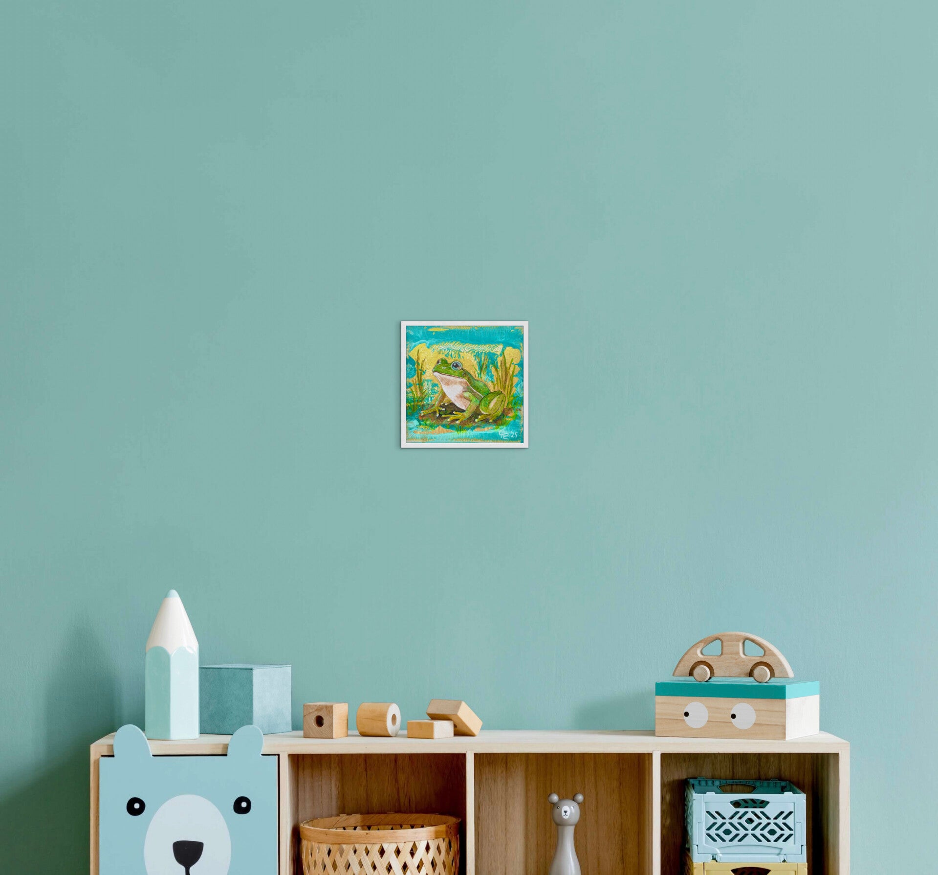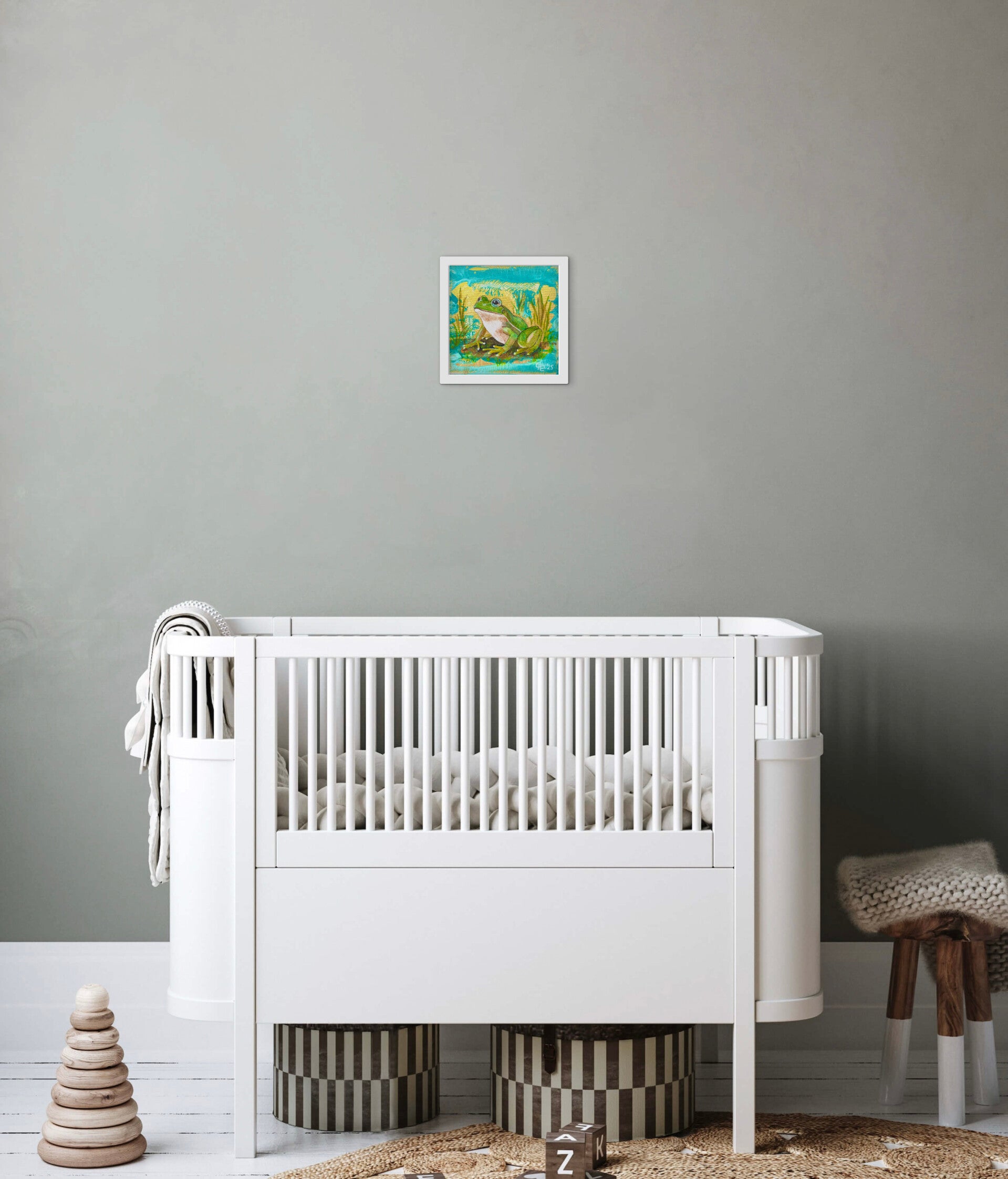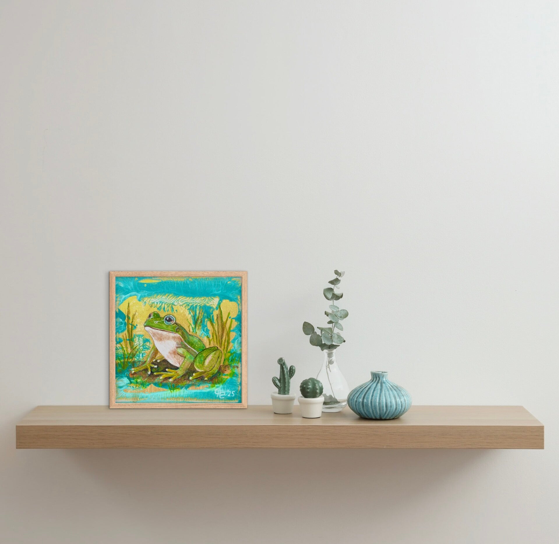 Es wird ein weißer Holzrahmen von 3,2 cm Dicke mitgeliefert mit einer sichtbaren Vorderkante von 1,8 cm. Er kann sowohl aufgehängt als auch aufgestellt werden. Andersfarbige Rahmen auf den Bildern sind nur beispielhaft.